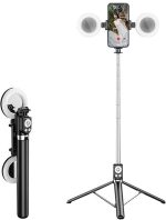 EXTENDABLE SELFIE STICK WITH DOUBLE MIRROR RINGLIGHT + TRIPOD STAND + BLUETOOTH SHUTTER